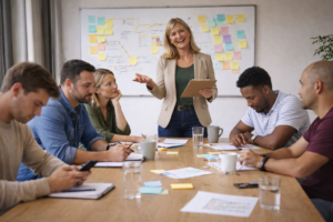 - fokus er på beslutninger, fremdrift og alignment – ikke kunst